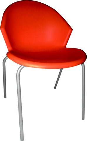 Estructura estibable en tubo redondo de 7/8" cal. 18, pintura color aluminio, regatones de media luna en base en polietileno, fijación por medio de pija Hi-Fast, concha de plástico de polipropileno en asiento y respaldo de una sola pieza, sin tapiz.